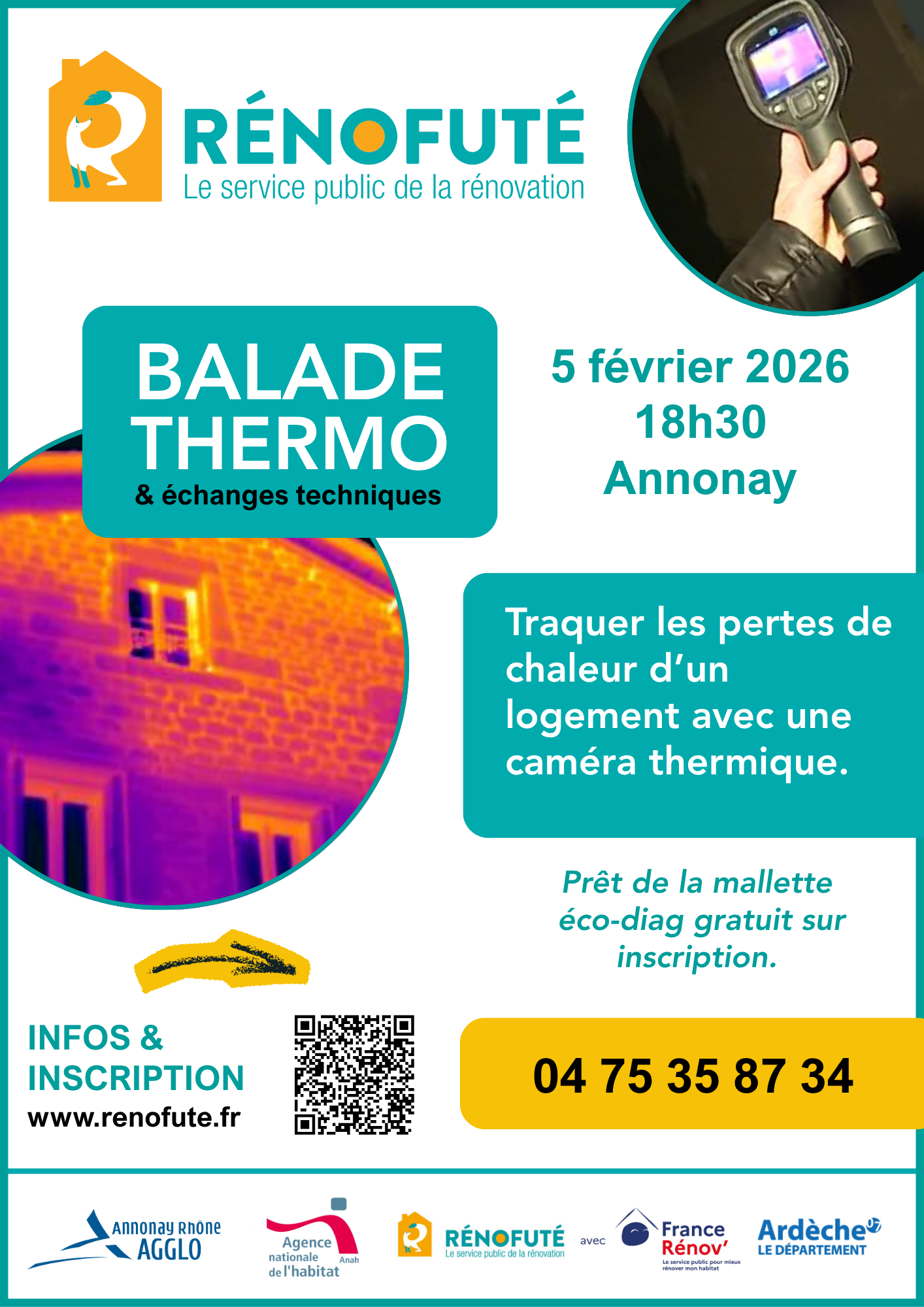 Rénofuté, vous propose un moment convivial pour découvrir l’utilisation d’une caméra thermique et répondre à toutes vos questions en matière de rénovation.