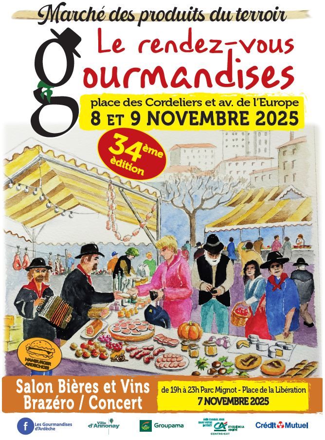 🧺 Les samedi 8 et dimanche 9 novembre, le centre-ville d’Annonay s’animera autour du grand marché des Gourmandises d’Ardèche, sur la place des Cordeliers et une partie de l’avenue de l’Europe (entre le Pont Vagelas et le bas de la Rue de Deûme).