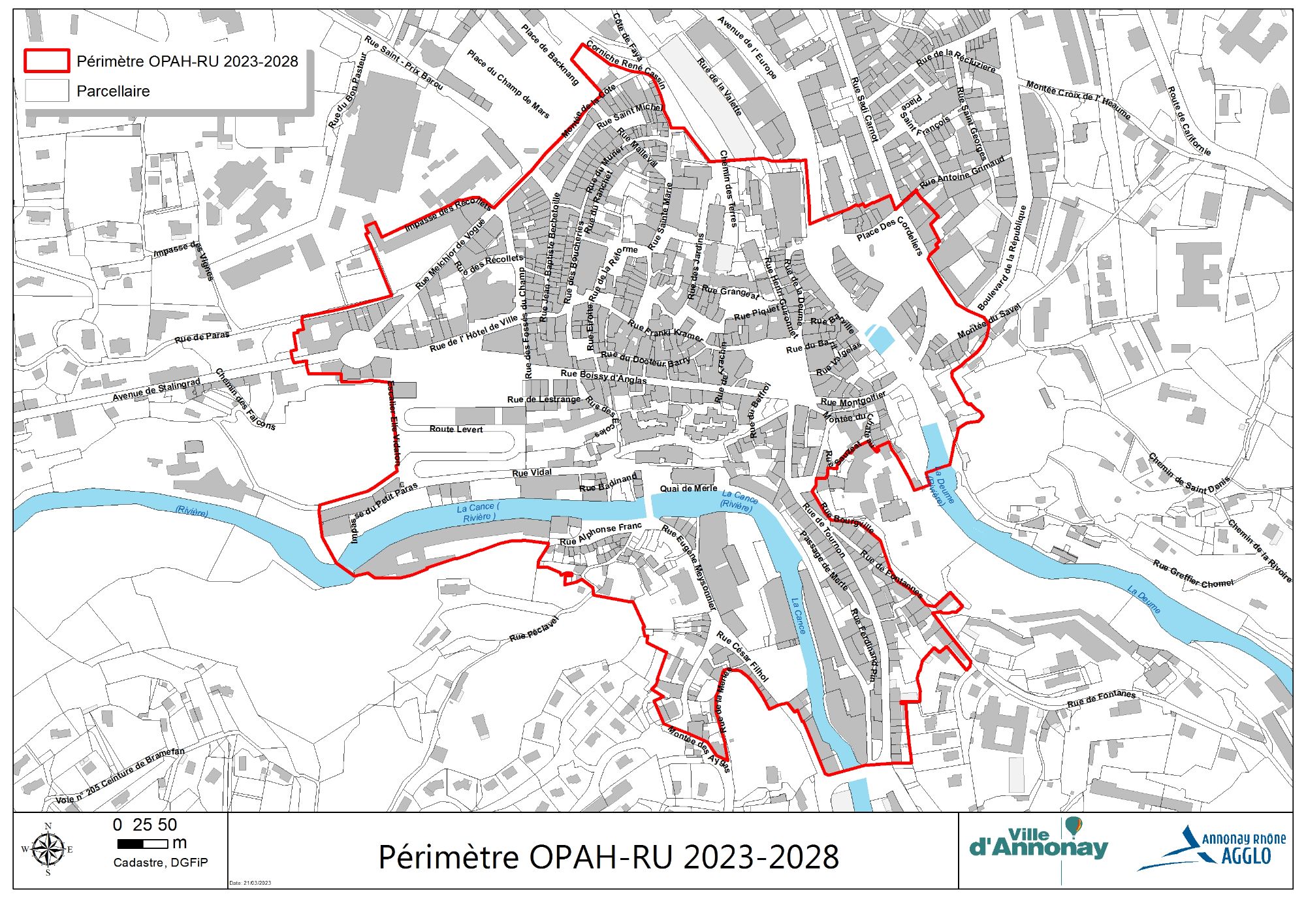 Annonay Rhône Agglo, la ville d'Annonay et l'Anah ont décidé de lancer une nouvelle Opération Programmée d'Amélioration de l'Habitat et de Renouvellement Urbain (OPAH-RU) dénommée OPAH-RU Cœur de Ville historique, Cance, Tournon sur la période 2023-2028 (voir carte du zonage ci-après). Cette OPAH-RU fait suite à deux précédentes OPAH-RU sur le cœur de ville historique.